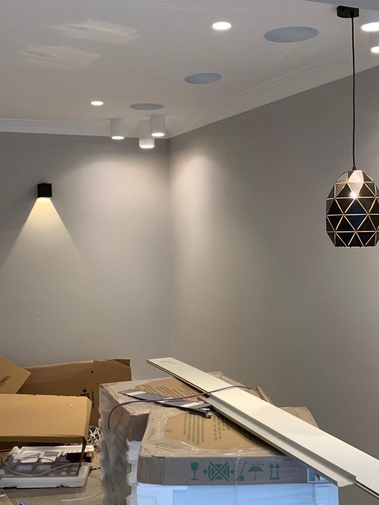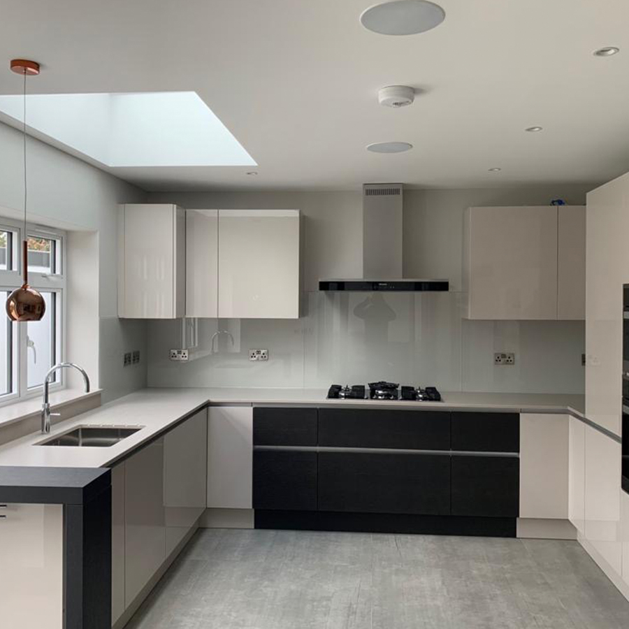 In this project that was managed by Jenga Group, I worked closely to design the kitchen and lighting plans(controlled by Lutron) and provided a detailed Recessed Ceiling Plan(RCP) and Lutron circuit drawings. By incorporating the layered lighting and modern light fittings we were able to create a visually comforting, appealing space. Collaborated with the kitchen supplier and Jenga to design a modern kitchen that is also chic and classic by adding a few elements in wooden finish. As the client was not keen on open space, we reimagined the kitchen design. We were able to create a U shaped kitchen that opened into the dining area through wide double doors.