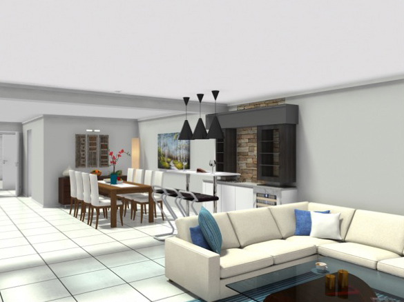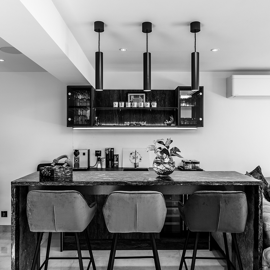 It was interesting to design a home that incorporates functionality and the needs of the client. Detailed 2D and 3D drawings were presented to the client that also included the lighting plan. Designing the bar proved to be a new, exciting experience. We installed Home automation and lighting controlled by Loxone. It was a pleasure to work closely with the client to come up with a well-designed home that exudes beauty and functionality.