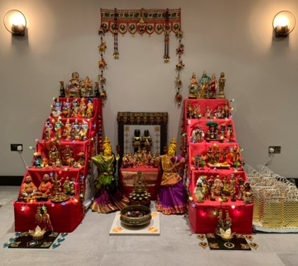 Navratri holds a special place in my heart, evoking cherished memories of family traditions and festive creativity. In South India, Navratri is celebrated with an artistic display of dolls and figurines, often arranged on steps, known as Golu. These displays narrate stories from mythology, everyday life, or significant moments such as weddings, temple visits, or scenes of rural life.